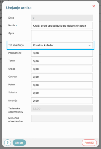 Na zaposlenem je nato potrebno izbrati nov urnik.