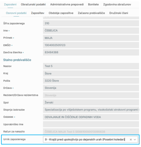 Za pravilno delovanje je potrebno najprej urediti podatke v Kadrovski evidenci na zaposlenemu.