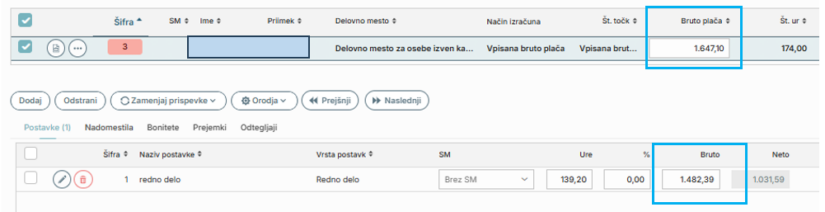 Na samem obračunu je vidna bruto plača (po pogodbi -100%) na podlagi katere se obračuna osnovna plača na 90%.